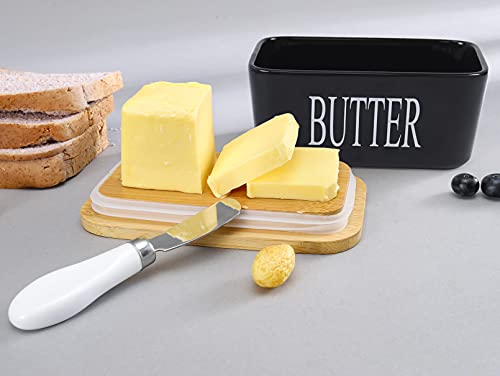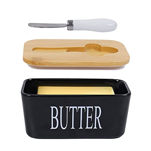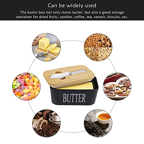 Goklmn - طبق زبدة بورسلين مع غطاء، سدادة سيليكون محكمة الغلق مع سكين زبدة من جو كلمن، أسود