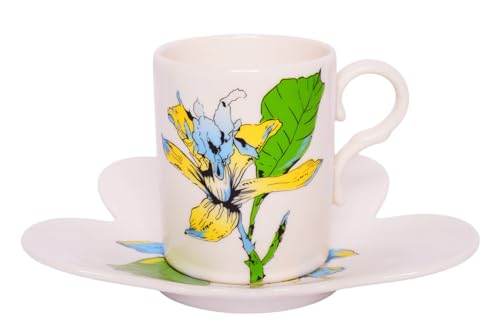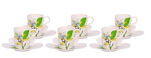 Generic - طقم فناجين قهوة بورسلين مع صحن مكون من 12 قطعة - ابيض