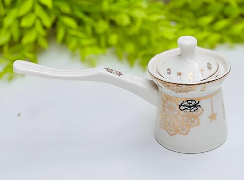 Generic - قهوة كونكي من البورسلين - تصميم انيق مع لمسات ذهبية، متينة، مثالية لتقديم المشروبات الساخنة بأناقة مع غطاء مطابق، مثالية للمنازل والمقاهي
