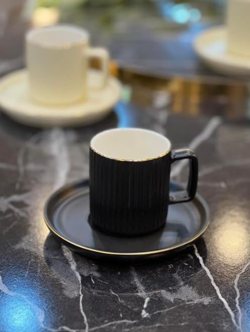 - ✅【طقم متكامل ومتناسق】يحتوي على 6 فناجين و6 أطباق متطابقة في التصميم لتوفير تجربة تقديم متناسقة وسهلة، مما يسهل عليك تنظيم جلسات القهوة بطريقة مثالية واحترافية، ويجعل الضيافة أكثر أناقة وتنظيمًا مع الحفاظ على التناسق والجمال في كل مرة تقدم فيها المشروبات. 🍵