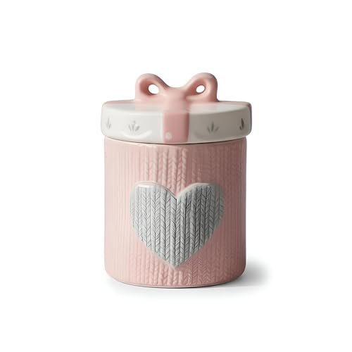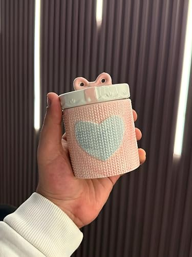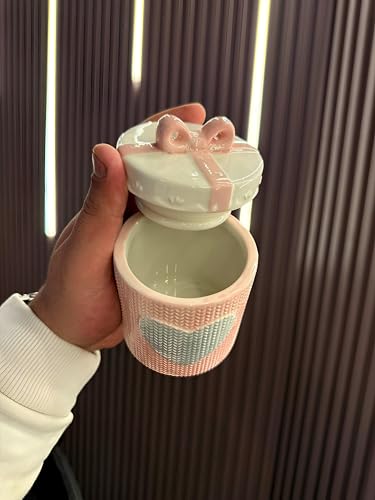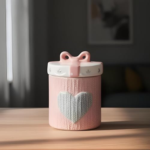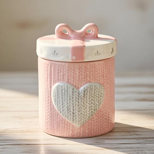 - يتميز وعاء التخزين الخزفي هذا بنمط قلب محبوك فريد من نوعه بدرجات اللون الوردي والأبيض الناعمة، مقترنًا بغطاء مزخرف على شكل فيونكة يضيف جمالية غريبة مصنوعة يدويًا إلى أي مطبخ أو مساحة معيشة، مما يجعله عمليًا وجذابًا بصريًا.
