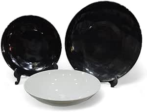 Generic - طقم عشاء بورسلين 18 قطعة، أبيض وأسود، لمعة، للمطبخ