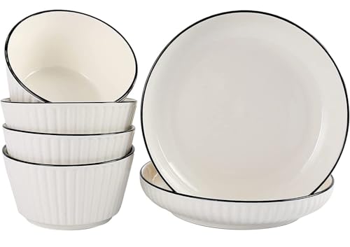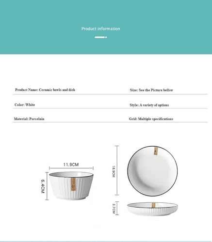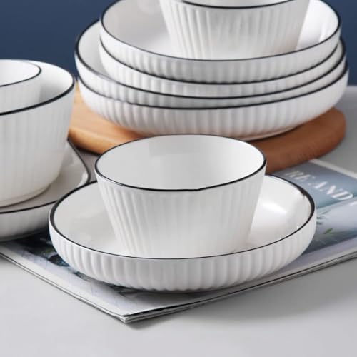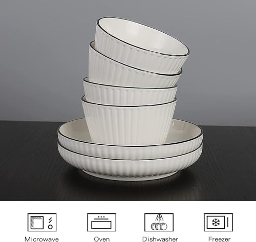Generic - طقم عشاء بورسلين - أطباق مستديرة وأوعية حساء (4 أطباق + طبقين) - أبيض سادة