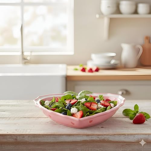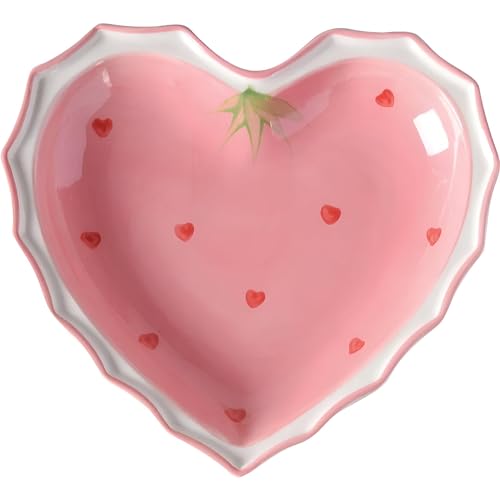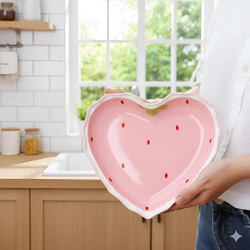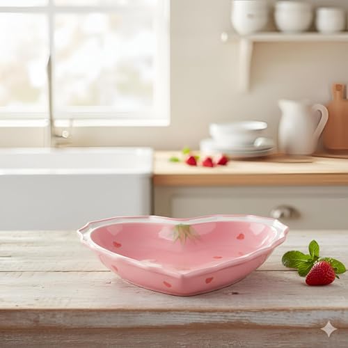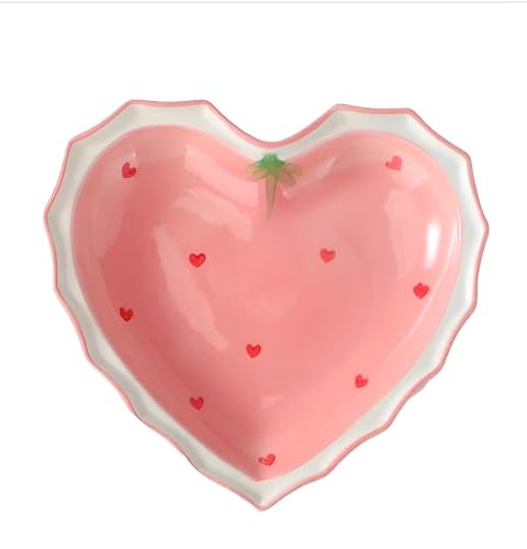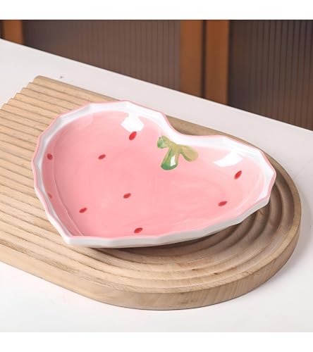 Generic - طبق بورسلين - طبق بورسلين مع زخرفة قلب فراولة للطاولات العصرية، مثالي للحلويات وصناديق الفاكهة والهدايا بتصميم راقي ومتانة عالية