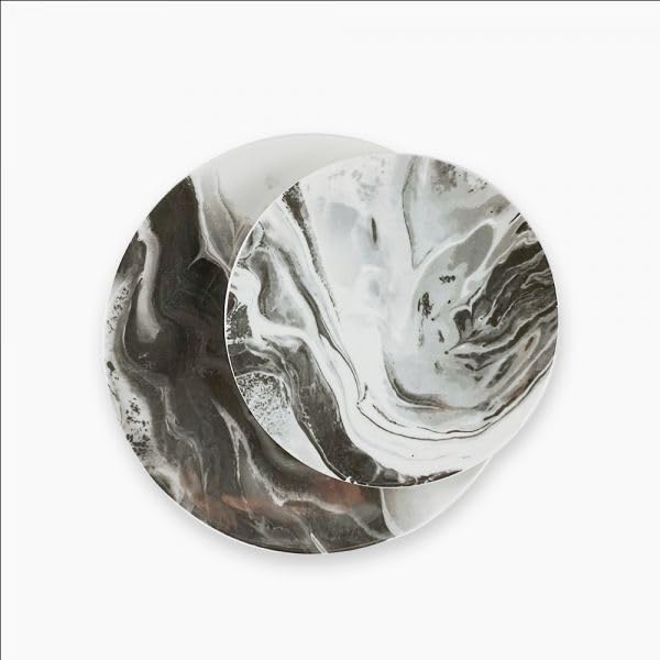 - تصميم أنيق: يتميز بنمط رخامي فضي مذهل مستوحى من المجرة على البورسلين الفاخر، مثالي لإعدادات الطعام الحديثة