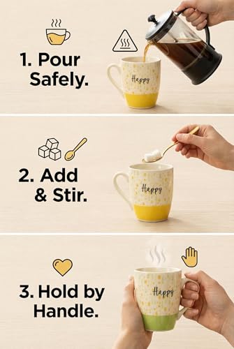 Generic - عبوة أكواب بورسلين - ارتشف مشروبك المفضل من هذه الأكواب الخزفية الساحرة ذات الزهور السعيدة، تتميز بقاعدة مغموسة باللونين الأصفر والأخضر تضيف لمسة من الألوان، آمنة للغسل في غسالة الأطباق (طراز 1)