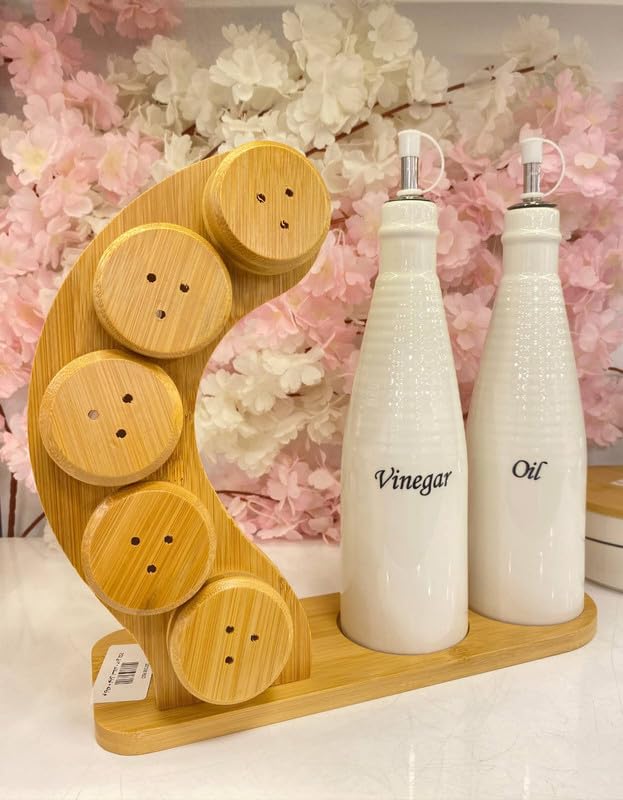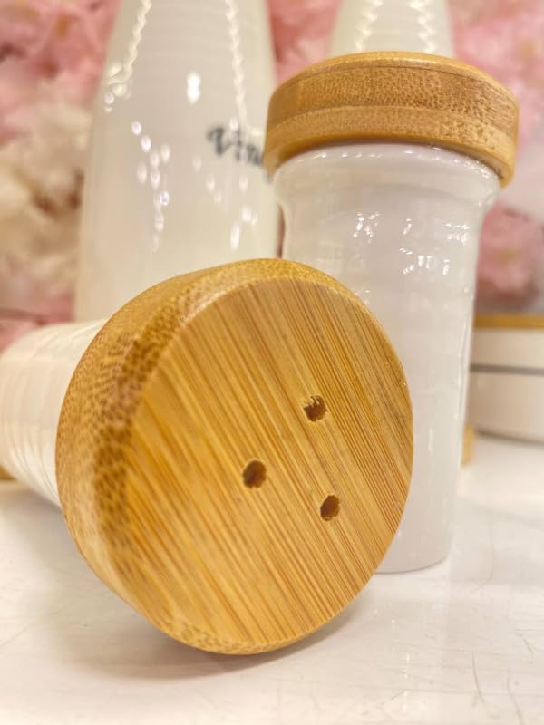 - تصميم بسيط وأنيق: لمسة نهائية بيضاء بسيطة مع ملصقات شفافة "زيت" و"خل" تضيف سحرًا إلى أي ديكور مطبخ.