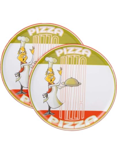 Generic - طقم صواني بيتزا بورسلين 2 قطعة33 سم و 31 سم تصميم شيف بيتزا