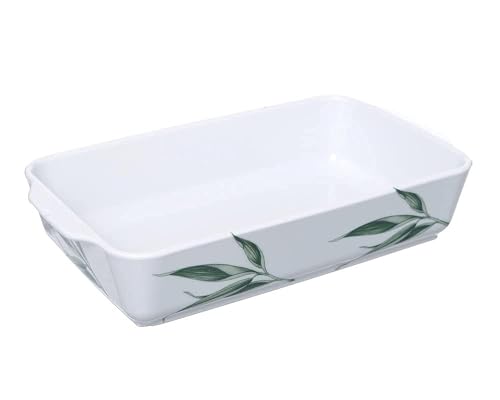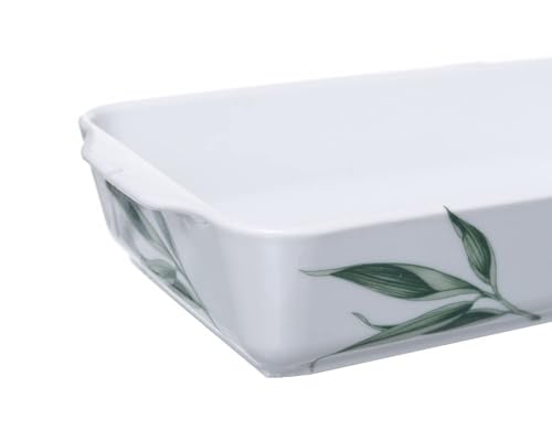 Generic - طاجن بورسلين مستطيل مطبوع 29 × 15 سم - أبيض و أخضر Coll-Be-071