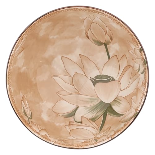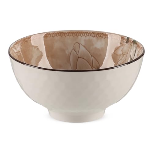 • تصميم أنيق: أوعية بورسلين جميلة تتميز بجزء خارجي بيج مع نمط زهور مزخرف على الجزء الداخلي ولمسة نهائية داكنة متطورة