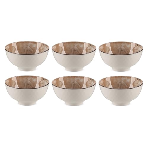 Generic - طقم اوعية تقديم من البورسلين، 6 قطع، بيج مع تصميم داخلي مزين بالزهور