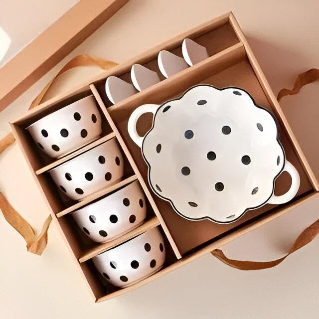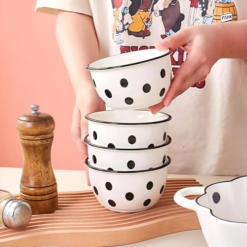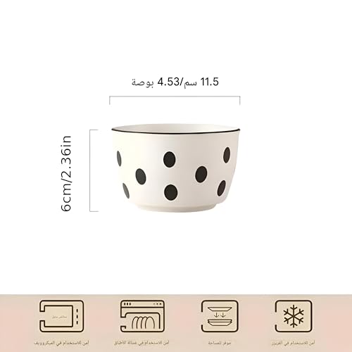 - تتألق العملية متعددة الاستخدامات حيث أن البولات مناسبة للشوربة أو الحبوب أو الحلويات أو الوجبات الخفيفة؛ هذه المجموعة مصممة لتناول الطعام اليومي والاحتفالات على حد سواء، حيث يمتزج السيراميك الأبيض ذو النقاط السوداء مع أي جماليات مطبخ، من البسيط إلى الانتقائي، مع الحفاظ على أجواء ساحرة وسهلة الوصول.