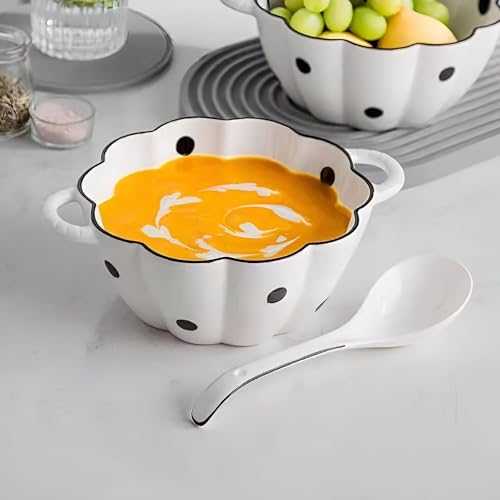 - يتركز التصميم الجذاب على السيراميك الأبيض الكلاسيكي المتباين مع تصميم منقط أسود، وتوفر الحواف المتموجة الواضحة صورة ظلية ناعمة وراقية للارتقاء بمستوى طاولتك، في حين أن التصميم البسيط يجعل من السهل مطابقة هذه البولات مع أدوات الطعام الموجودة أو استخدامها كديكور محايد أو لإضفاء لمسات جريئة في كل من المنازل الحديثة والتقليدية.