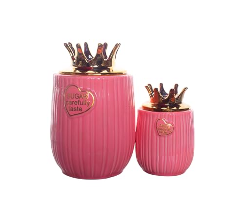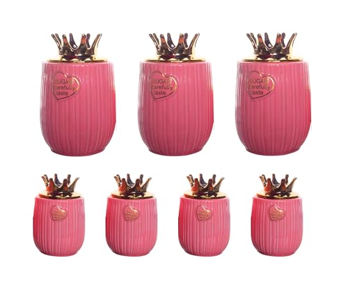 Generic - طقم برطمانات توابل بورسلين مع غطاء تاج، 7 قطع - بينك