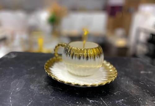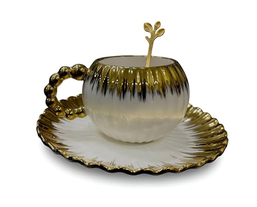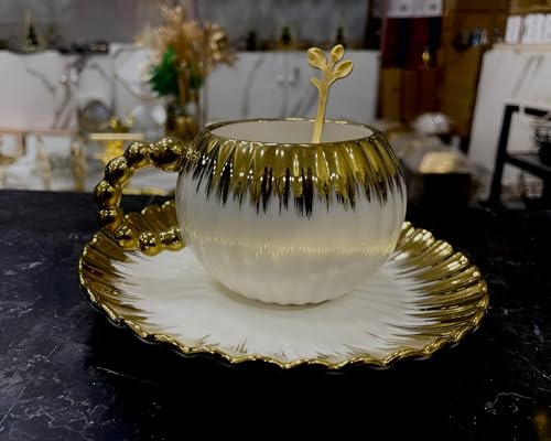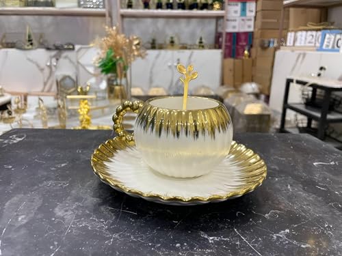 Generic - ادوات مائدة بورسلين - مجموعة فاخرة مع ملعقة ذهبية وطبق لتقديم الطعام الانيق وتقديم الهدايا