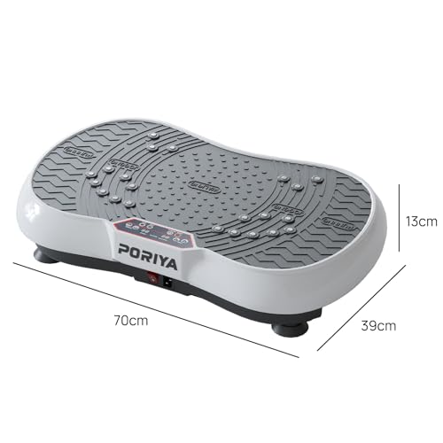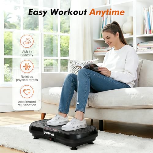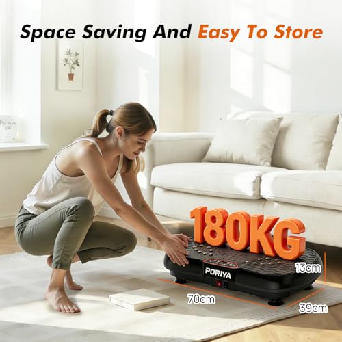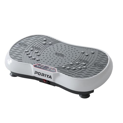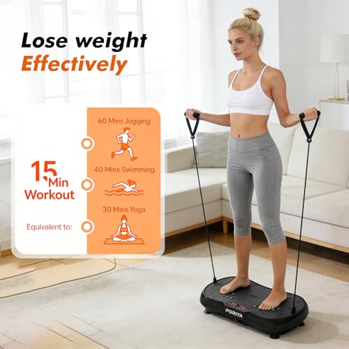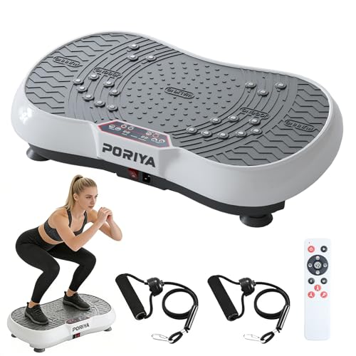 PORIYA - جهاز اهتزاز من بوريا، سعة 180 كغم، 99 مستوى سرعة، لوح هزاز للياقة البدنية لكامل الجسم بجهاز تحكم عن بعد، منصة تمرين مع احزمة مقاومة للتمرين المنزلي، مثالية لجميع الاعمار