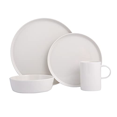 Porland - طقم عشاء شوبان من البورسلين من بورلاند، مكون من 4 قطع مع كوب، (1) طبق عشاء 26.9 سم، (1) طبق للسلطة/والحلويات 17.9 سم، (1) بولة 15.9 سم، (1) مج 319.9 مل، أبيض