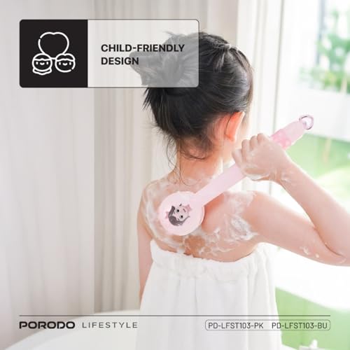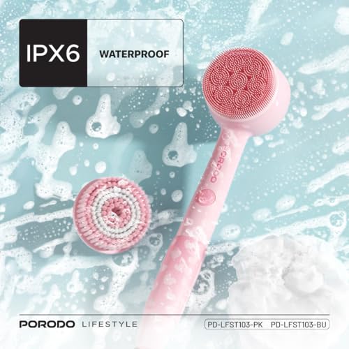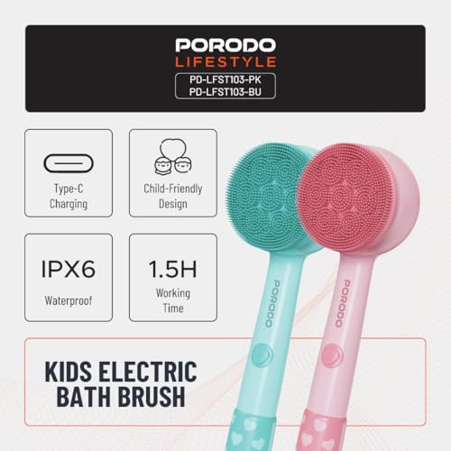 Porodo - فرشاة استحمام كهربائية للأطفال لايف ستايل، مقاومة للماء بتصنيف IPX6، بطارية 1200 مللي أمبير/ساعة، تصميم مناسب للأطفال، منظف بالليفة الناعمة، فرشاة سيليكون ناعمة، وقت عمل 90 دقيقة (أزرق) من بورودو