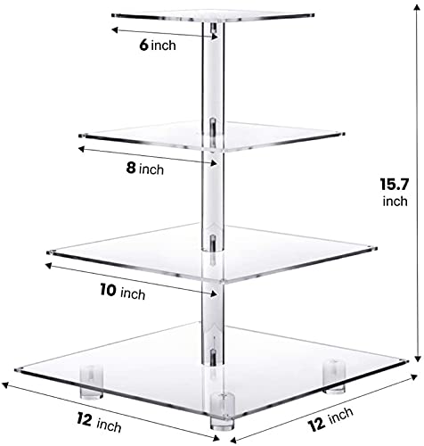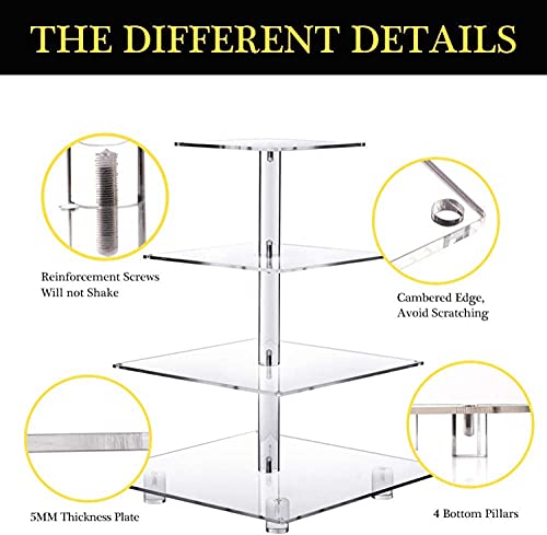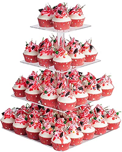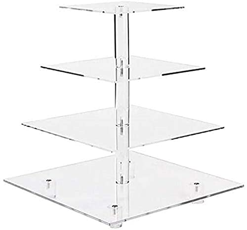 Porpoise - حامل كب كيك فاخر من 4 طبقات من الأكريليك من بوربويز، حامل كب كيك فاخر لعرض الحلوى على شكل برج للمعجنات/الشوكولاتة/المافن/الدونات/البراوني/الكب كيك، (4 طبقات مربعة)