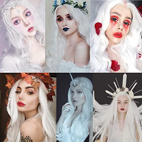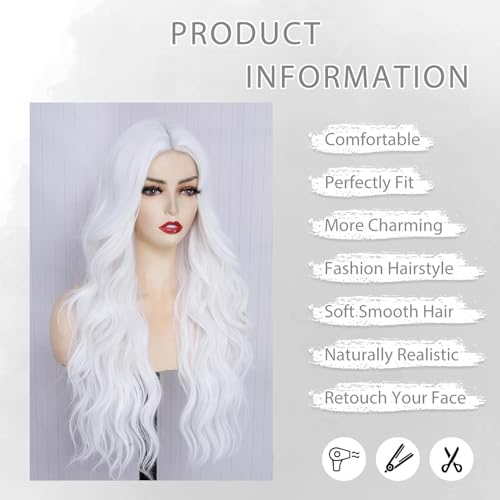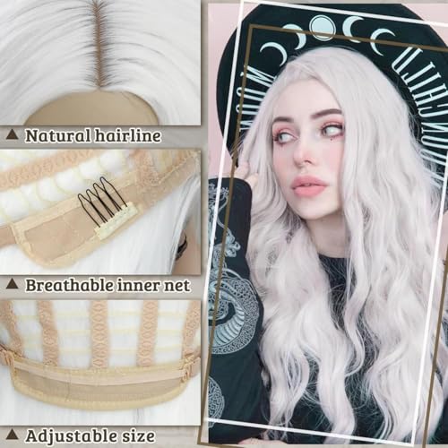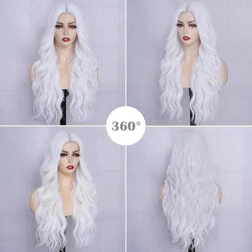 PORSMEER - باروكة بشعر طويل ومموج ومجعد طبيعي بفرق في المنتصف ونمط برازيلي مقاوم للحرارة للحفلات التنكرية والهالوين وللارتداء اليومي للنساء من بورسمير