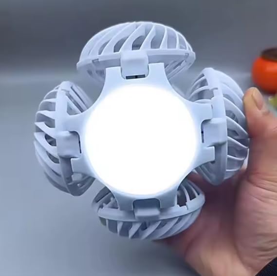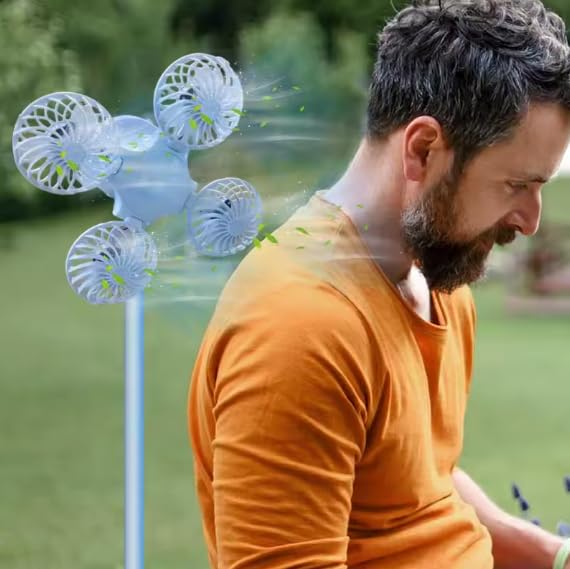 - تصميم رباعي الرأس: تتميز بـ 4 رؤوس مروحة قوية توفر تغطية شاملة لتدفق الهواء بزاوية 360 درجة، مثالية لتبريد المساحات الكبيرة في الخيام أو الكبائن.