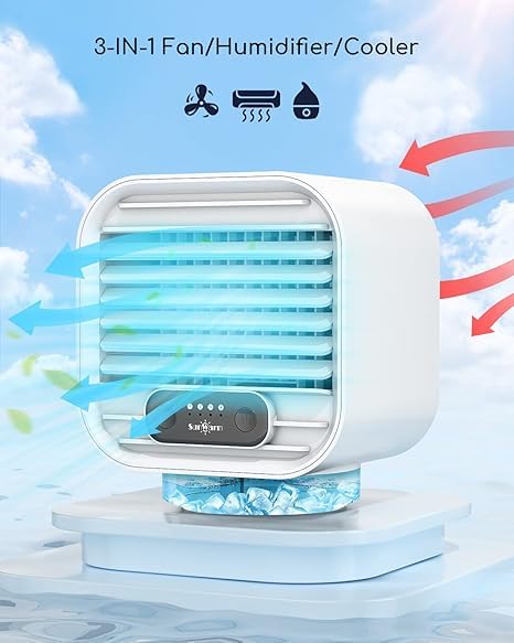 - مكيف هواء محمول 3 في 1 بتصميم متعدد الوظائف 3 في 1، يمكن استخدامه كمكيف هواء شخصي ومروحة مكتب عادية ومرطب للهواء. وهذا يعني أن مبرد الهواء الخاص بنا يمكنه تبريد الهواء الساخن وترطيب البشرة وترطيب الهواء، ويبقيك بعيدًا عن الهواء الجاف والصيف الحار، والاستمتاع بالهواء المنعش والمبرد.