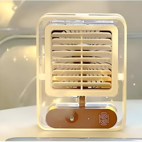 Generic - مكيف هواء محمول - مبرد تبخيري 3 في 1 قابل لإعادة الشحن بمنفذ USB ومروحة وإضاءة ليد يتميز بالتحكم باللمس و3 سرعات وتدفق هواء قابل للتعديل ورذاذ وتشغيل ببطارية قابلة لإعادة الشحن.