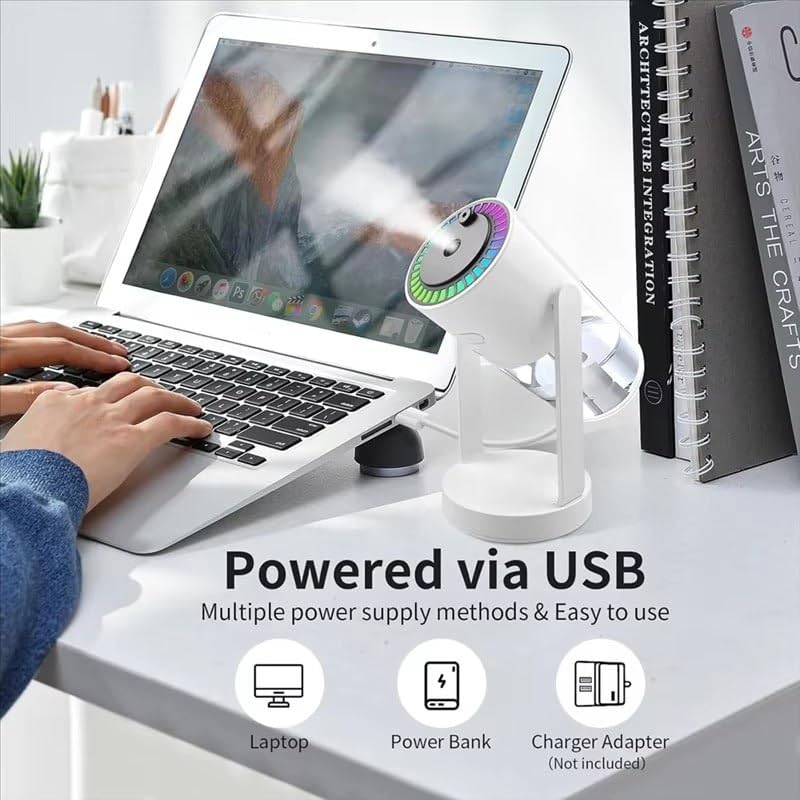 Generic - مرطب هواء محمول 2 في 1 قابل لاعادة الشحن بزاوية قابلة للتعديل وخزان مياه سعة 260 مل مع شحن USB، اضاءة LED بـ7 الوان لغرفة النوم والمنزل والمكتب