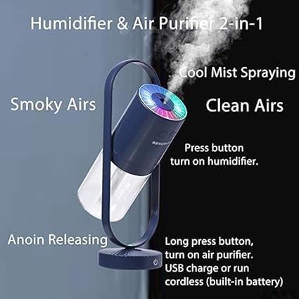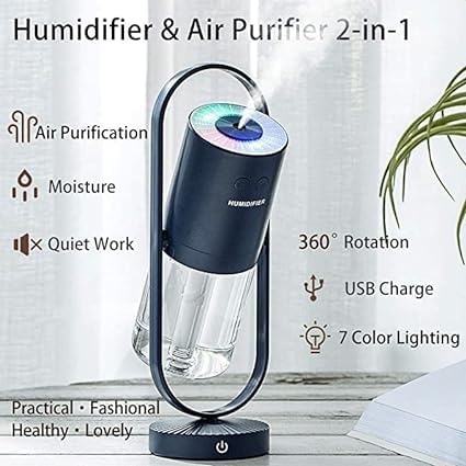 Generic - مرطب هواء محمول، منقي هواء قابل لاعادة الشحن 2 في 1 بزاوية قابلة للتعديل وخزان مياه سعة 260 مل بشحن USB، اضاءة ليد بـ7 ألوان لغرفة النوم والمنزل والمكتب (أزرق)