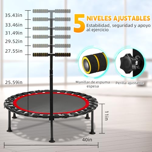 BingZair - ترامبولين محمول وقابل للطي للياقة البدنية مقاس 1 متر للبالغين والأطفال، ترامبولين برينكولين ايروبيك بمقابض قابلة للتعديل للتدريب في الأماكن المغلقة والمفتوحة، ارتداد هادئ، حتى 300 كيلوجرام