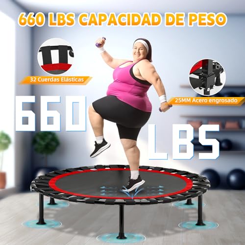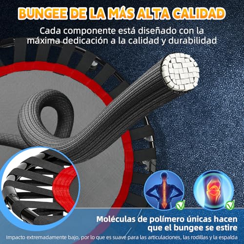 - ترامبولين اللياقة البدنية للبالغين والأطفال: الترامبولين المحمول مصنوع من نسيج شبكي متين وجيد التهوية ومرن للغاية، ومجهز بـ 32 حبل مرن عريض و6 أرجل أنبوبية سميكة 25 ملم، والتي يمكنها تحمل الاستخدام لفترة طويلة دون أن تصدأ وغير قابلة للتشوه. الترامبولين الخاص بنا مناسب للأطفال والكبار ويمكن أن يدعم أقصى وزن يصل إلى 300 كغم، مما يمنحك تمرينًا جيدًا يدوم طويلاً.