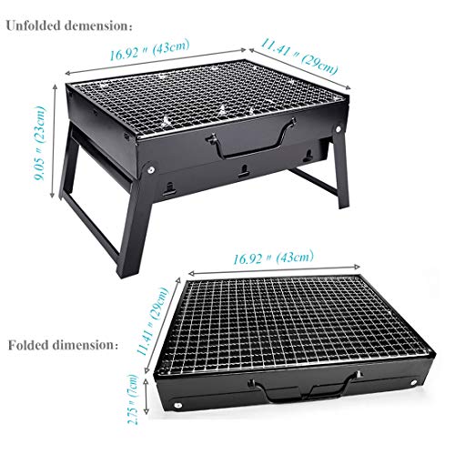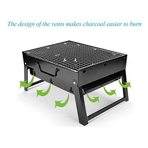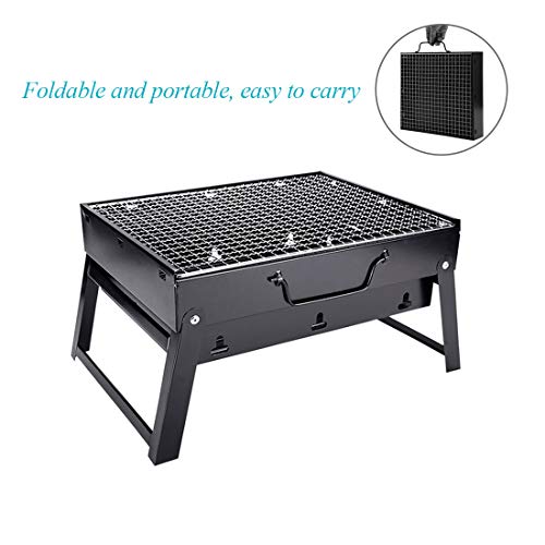 Parijojo - شواية فحم محمولة قابلة للطي من الفولاذ المقاوم للصدأ للاستخدام في الهواء الطلق والحديقة والطبخ والتخييم والمشي لمسافات طويلة والنزهات، تناسب من 3 إلى 5 أشخاص