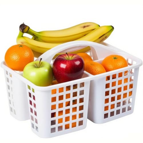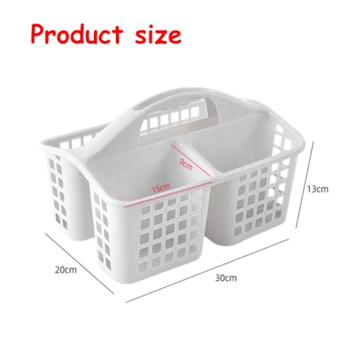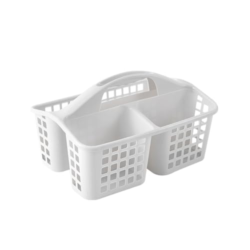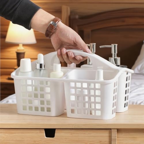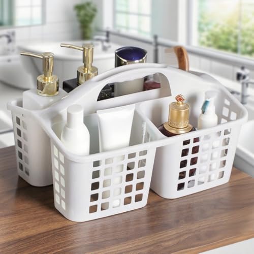 Quantumix - سلة تنظيم الحمام المحمولة مع مقبض، علبة دش بلاستيكية مع فتحات تصريف و3 مساحات تخزين للحمام والمسكن والمطبخ والسفر والمكياج، لون أبيض