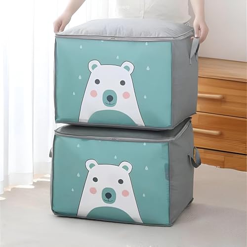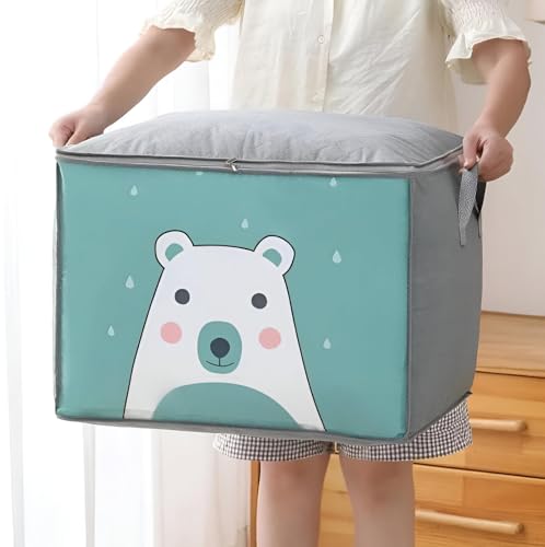 Generic - صندوق محمول - حاوية تخزين قابلة للطي شديدة التحمل بنمط كرتوني لتخزين الملابس والبياضات والبطانيات؛ لون وشكل عشوائيين، مقاومة للماء والغبار، مثالية للمنزل أو السكن أو السفر.
