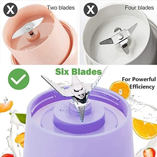 UHOUSEST - خلاط محمول، 380 مل/13 اونصة، خلاط صغير قابل لاعادة الشحن بمنفذ USB مع 6 شفرات للسموذي وطعام الاطفال والسفر والمكتب، خال من BPA، كوب عصارة لاسلكي 30 واط