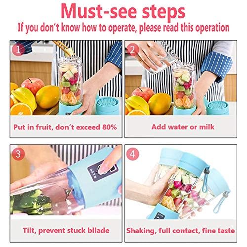 - 【أداء يعمل بمنفذ USB】مزودة ببطارية قابلة لإعادة الشحن بسعة 2000 ميلي امبير في الساعة، يمكن شحن زجاجة خلاط العصارة المحمولة بمنفذ USB دون عناء عبر طرق متنوعة مثل الباور بانك أو المحولات أو منافذ الكمبيوتر. في غضون 3 ساعات فقط، يكتسب الشحن الكامل، وهو ما يكفي لتنفيذ 10-12 جلسة مزج تدعم التغذية والنكهة