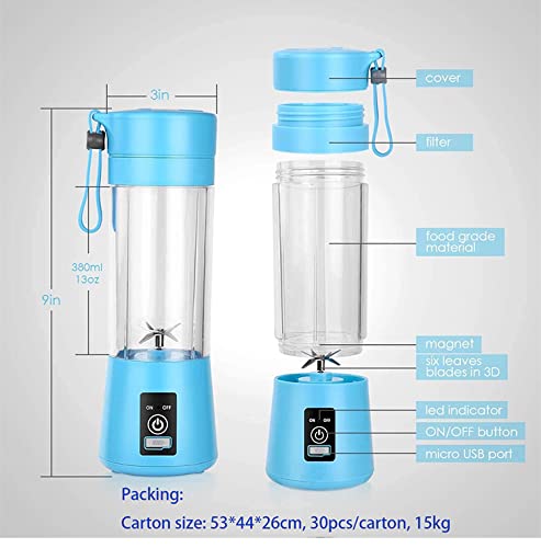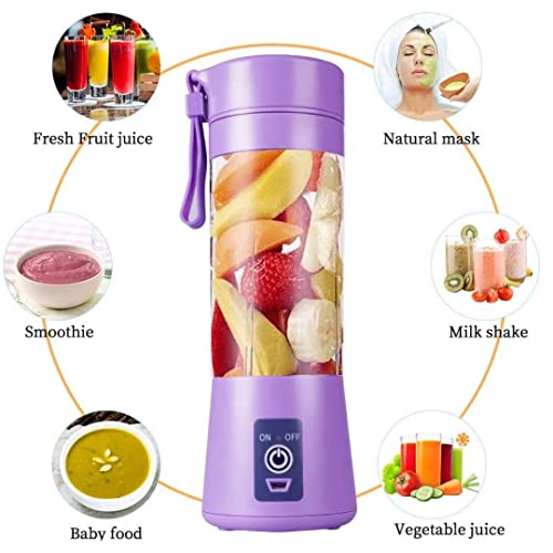 - خلاط محمول للسموذي والعصائر، خلاط كهربائي قابل لإعادة الشحن بمنفذ USB، خلاط شخصي للمخفوقات والسموذي مع 4 شفرات من الفولاذ المقاوم للصدأ، برطمان سعة 380 مل - أرجواني