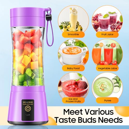 Gardreg - خلاط محمول للسموذي والمخفوقات - خلاط شخصي لاسلكي مع كوب سفر خالٍ من BPA سعة 380 مل، 6 شفرات من الستانلس ستيل لمزج قوي، مناسب للرياضة/السفر/المنزل