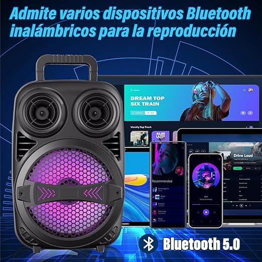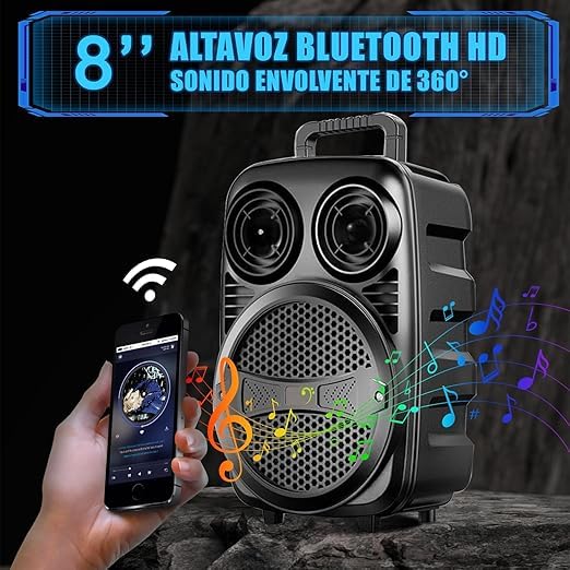 Generic - سماعة بلوتوث محمولة – صوت ستيريو TWS بقدرة 7 واط ومقاس 8 بوصة، بطارية 1500 مللي أمبير، دعم USB / كارت ميموري – مثالية للاستخدام الخارجي والمنزلي