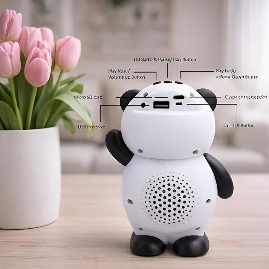 - يجمع مكبر الصوت المحمول الرائع على شكل باندا بين تصميم مرح ولافت للنظر مع إخراج صوت عالي الجودة، مما يجعله إضافة مبهجة لأي غرفة أو مكتب أو إعداد خارجي، مع توفير صوت واضح وقوي من خلال مضخم الصوت ار ام اس 5 واط ومقاومة 4 اوم.