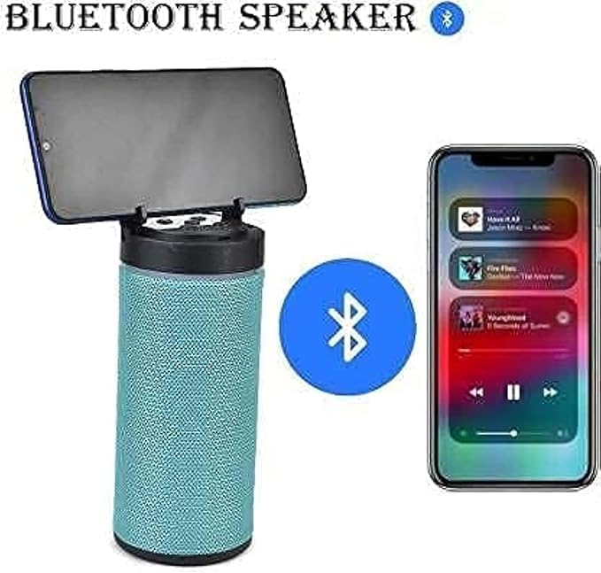 Generic - مكبر صوت بلوتوث محمول مع حامل هاتف، شحن USB، فتحة بطاقة تي اف، اوضاع تحكم متعددة، مشغل موسيقى لاسلكي - الوان متعددة