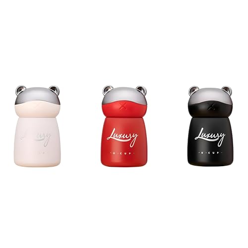 Generic - زجاجة محمولة معزولة 120 مل على شكل حيوان لطيف، مثالية للمدرسة، تصميم مانع للتسرب ومقاوم للاهتراء للحفاظ على مشروباتك دافئة (3 قطع، أسود، أبيض، أحمر)