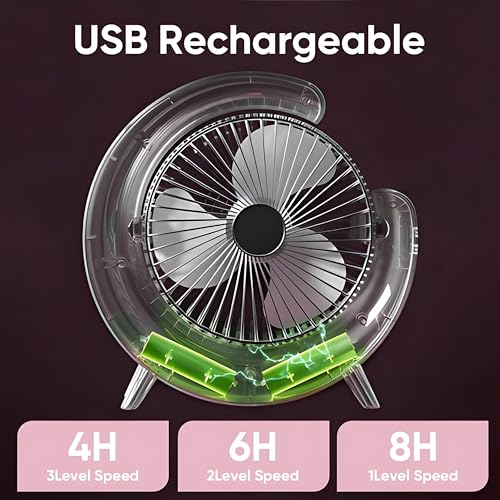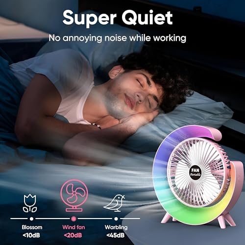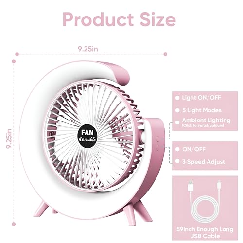Generic - مروحة محمولة خفيفة الوزن قابلة لاعادة الشحن مقاس 5 انش مع ضوء LED ناعم، 3 سرعات قابلة للتخصيص، منفذ شحن USB، تصميم هادئ مضغوط، مثالية للسكن والمكتب والرحلات الصيفية