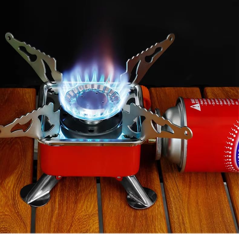 - موقد تخييم محمول: موقد غاز بوتان صغير الحجم مصمم للطهي في الهواء الطلق أثناء التخييم والمشي لمسافات طويلة وتسلق الجبال والنزهات مع هيكل خفيف الوزن لسهولة النقل