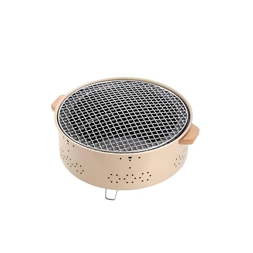 Generic - شواية فحم محمولة دائرية صغيرة غير لاصقة بهيكل من الفولاذ المقاوم للصدأ ومقبض مقاوم للحرارة للوجبات الداخلية والخارجية والمناسبات العائلية والنزهات والطهي في موقع التخييم سريعة التنظيف