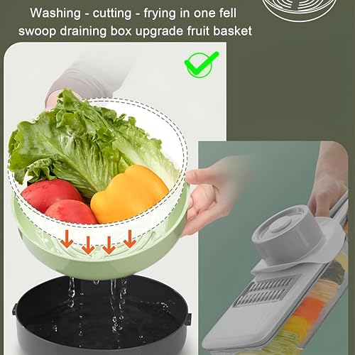 Generic - مفرمة محمولة - قطاعة خضروات 9 في 1 تتميز بتصميم محمول وشفرات من الستانلس ستيل 304، تأتي مع سلة تصريف لتقطيع الخضروات بسهولة وفعالية.
