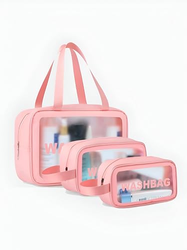 Generic - حقيبة- مستحضرات تجميل شفافة محمولة للنساء منظم مكياج مقاوم للماء للسفر تخزين عملي للمكياج حقائب بلاستيكية مجموعة من 3 قطع بأحجام مختلفة لجميع احتياجاتك المكياج وردي