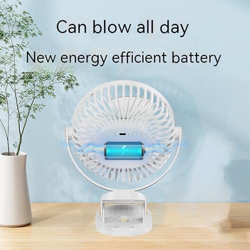 AbuDodo - مروحة صغيرة محمولة بمشبك وضوء ليد وشاشة رقمية، مروحة طاولة قابلة لإعادة الشحن بـ 5 سرعات، دوران 360 درجة، مروحة هادئة: مروحة شخصية للمنزل والمكتب وعربة الأطفال والتخييم والأماكن الخارجية - أزرق