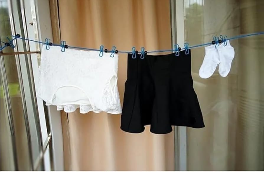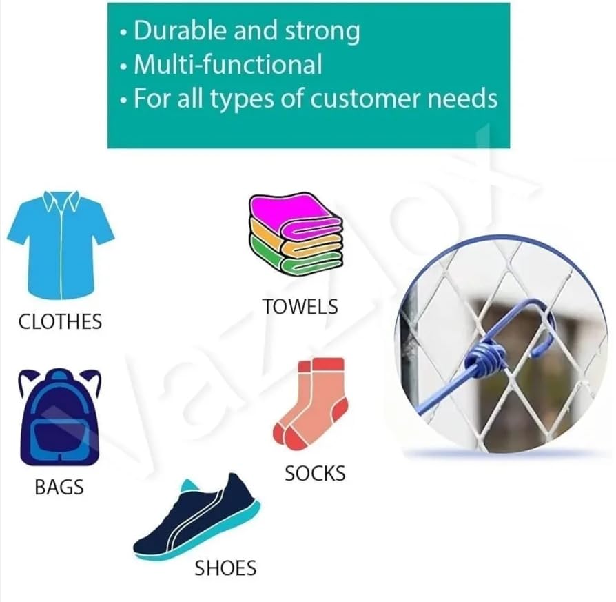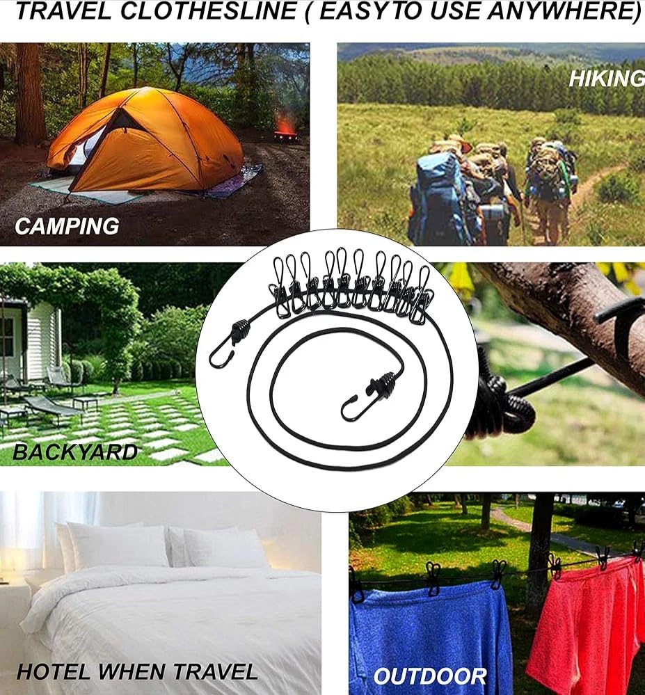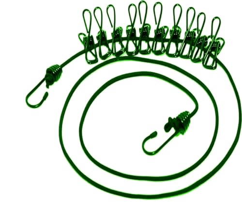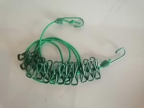 Generic - حبل غسيل محمول مرن للسفر والتخييم قابل للتعديل لتنشير الملابس في الهواء الطلق مع خطافين و 12 مشبك غسيل معدني مقاوم للرياح - طول يصل الي 165 سم تقريبا - لون اخضر
