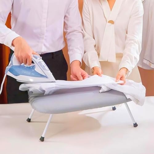 Generic - طاولة مكواة صغيرة محمولة قابلة للطي مع غطاء مقاوم للحرارة، وحدة كي موفرة للمساحة للمنزل والسفر، سطح قابل للطي صغير وخفيف الوزن للاستخدام اليومي، لون رمادي